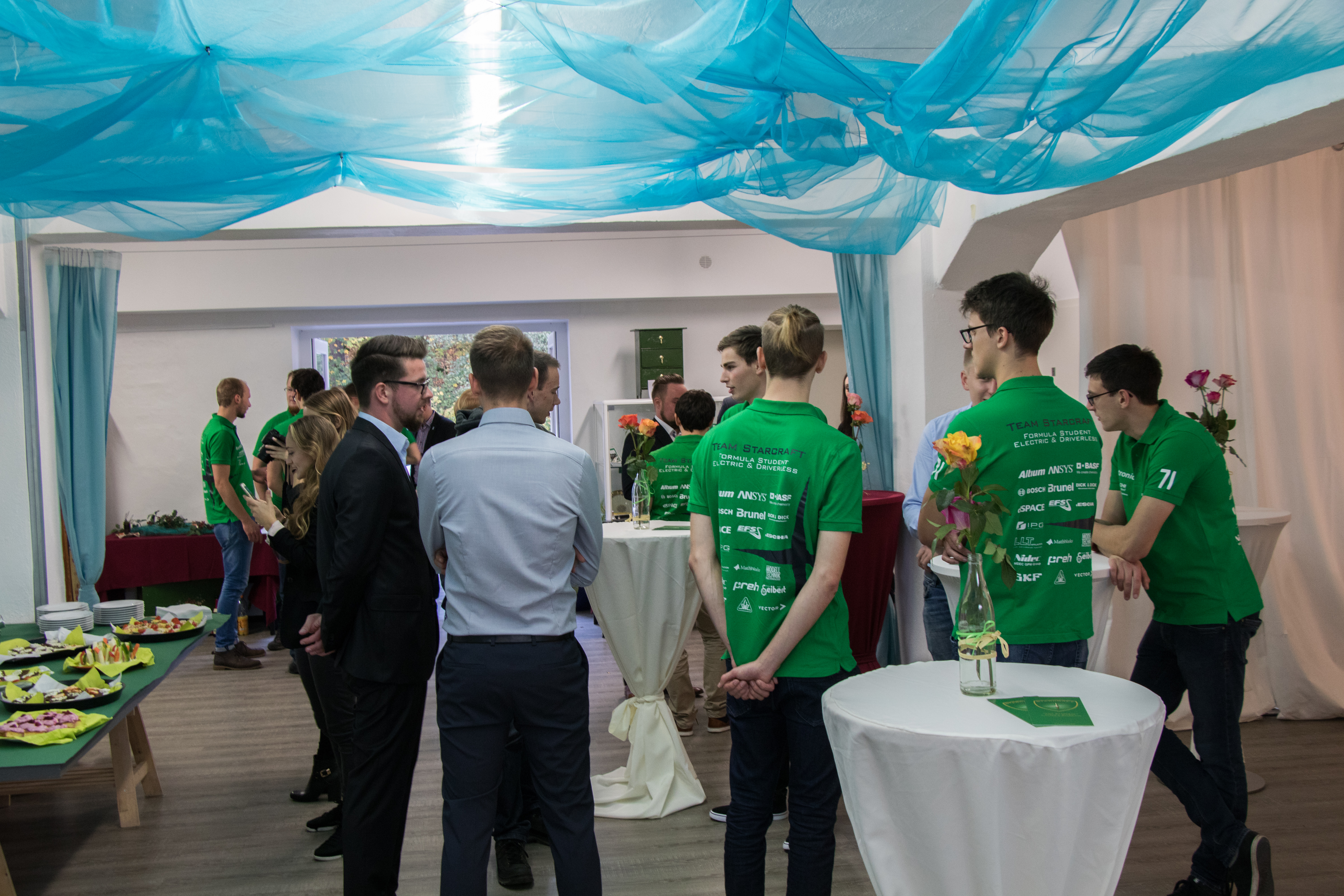 Gemeinsam mit unseren Sponsoren blickten wir am 25. Oktober auf die vergangene Saison zurück und resümierten die Fortschritte und Entwicklung des Teams. Die neuen Vorstandsmitglieder präsentierten neben dem Entscheidungsprozess für die Teilnahme an den zwei Formula Student Rennklassen (Electric und Driverless) in der letzten Saison auch die neuen Fahrzeugkonzepte sowie strategische und strukturelle Veränderungen in der Mitgliederverwaltung. Paul Schulze-Eckel, Technischer Leiter der Saison 17/18, schilderte genauere Details zum technischen Defekt in der Brandnacht. Zurzeit entwickeln wir in Zusammenarbeit mit der Formula Student Germany neue Sicherheitskonzepte, um solche verheerenden Vorfälle in Zukunft komplett auszuschließen.