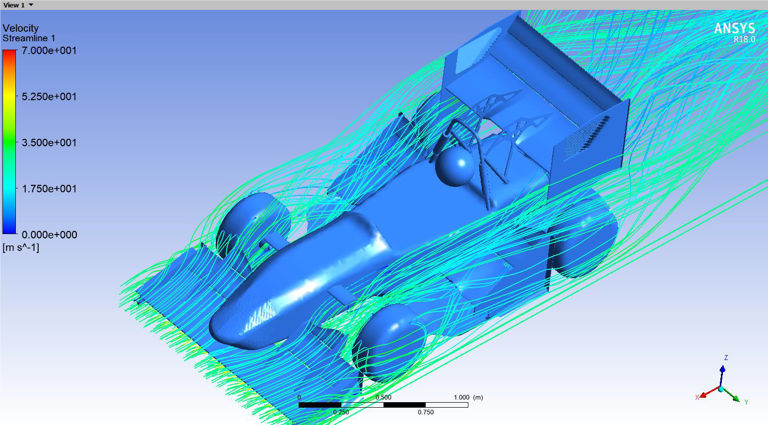 Die Entwicklung besteht hauptsächlich aus CFD-Simulationen, angefangen hierbei mit der Auswahl der Flügelprofile. Anschließend wurden die beste Position und Anstellung der Flügel unter Berücksichtigung der Form der Nase des Fahrzeugs und des Luftstromes um den Helm des Fahrers gefunden. Durch Luftleitelemente wurde der Luftstrom für die hinteren Aerokomponenten optimiert und um die Reifen gelenkt. Ein weiterer Schritt war mit Hilfe des Splitters und des Diffusors die aus dem Aeropaket erzeugte Kraft auf den Fahrzeugschwerpunkt zu verschieben, um ein stabiles Fahrverhalten zu erreichen.