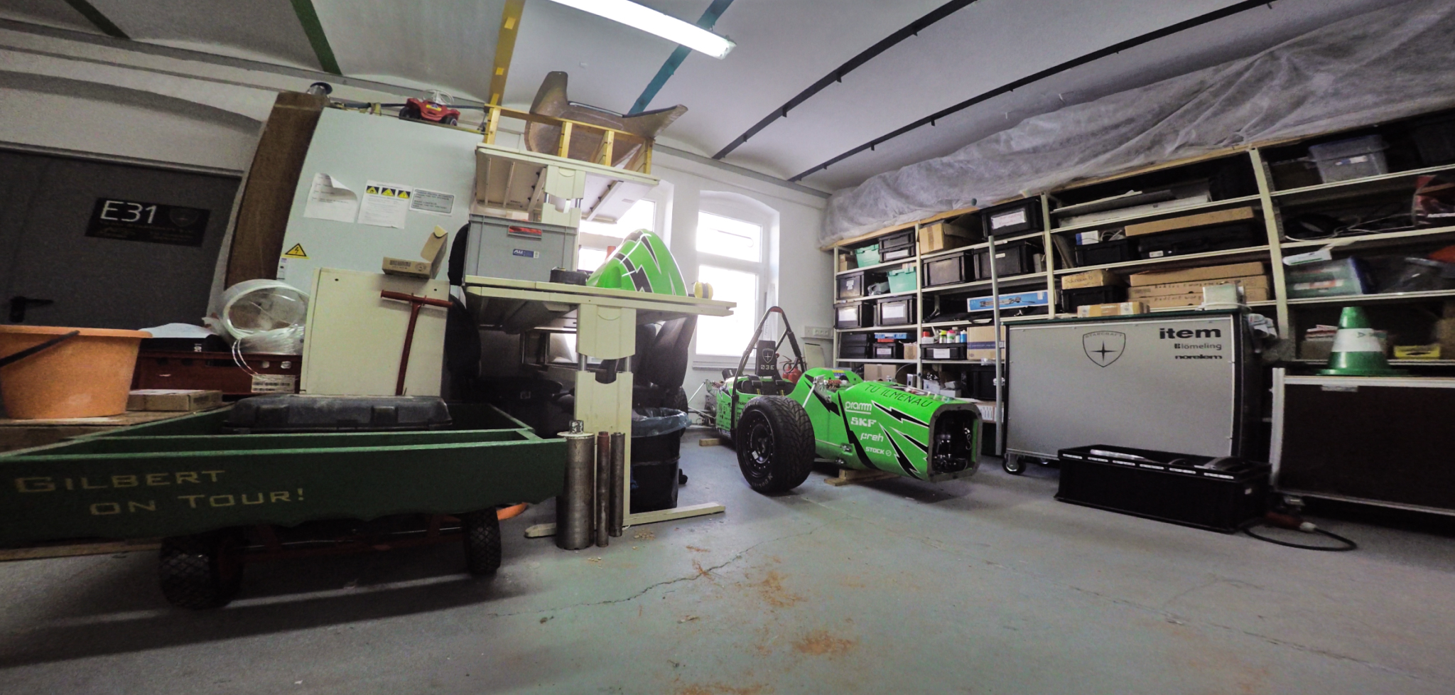 In der neuen Werkstatt haben wir insgesamt fünf Räume zur Verfügung. In den Tagen kurz vor der Weihnachtspause wurden bereits die ersten Wände in unserem markanten Team Starcraft-Grün gestrichen und mit unserem Logo versehen. Im neuen Jahr wurden dann der TSC-03E in die Werkstatt geschafft, an dem nun im Zuge des Driverless gearbeitet wird und auch alle anderen Gerätschaften und Dokumente.