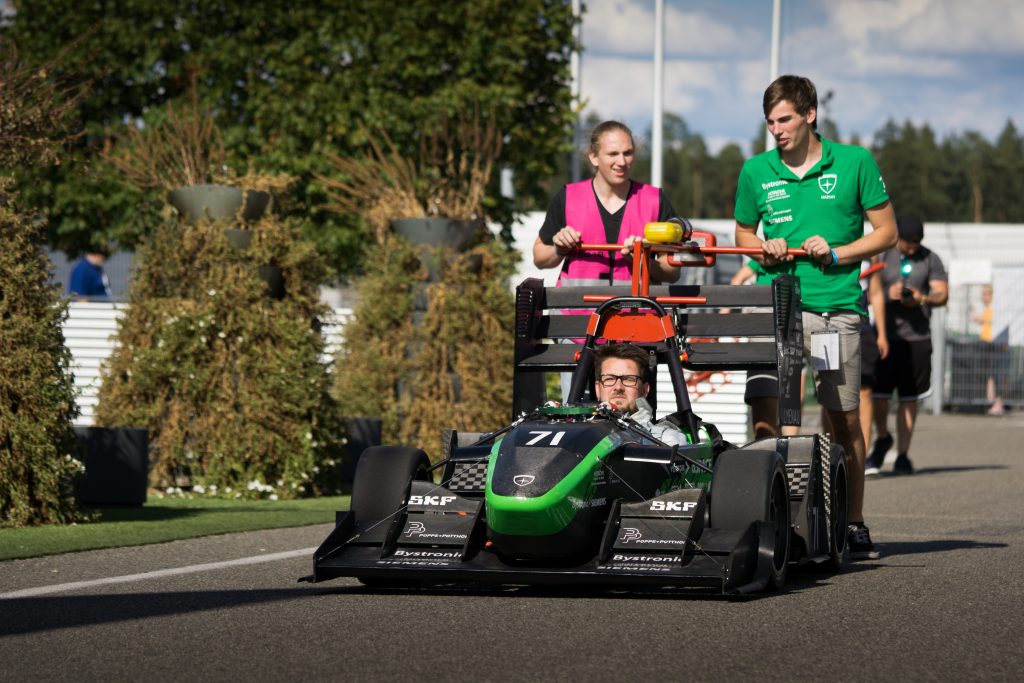 Der harte Rückschlag erfolgte dann Mitte der Woche. Trotz des Ausschöpfens der Arbeitszeit in den Pits und dem Akkuzelt war es uns leider nicht möglich, die entstandene Akkuprobleme zeitig zu beheben und mussten deshalb die dynamischen Events von der Tribüne aus verfolgen. Von Judges und anderen Teams wurden wir jedoch durchwegs für unseren zukunftsorientierten Konzeptwechsel gelobt. So erreichten uns die motivierenden Worte, dass wir diese Saison nicht nur eine Evolution, sondern sogar eine Revolution durchlaufen haben und wir bei weiterer Verfolgung des Konzepts 2019 Chancen auf eine Top-Platzierung haben. Wir sind also auf dem richtigen Weg.