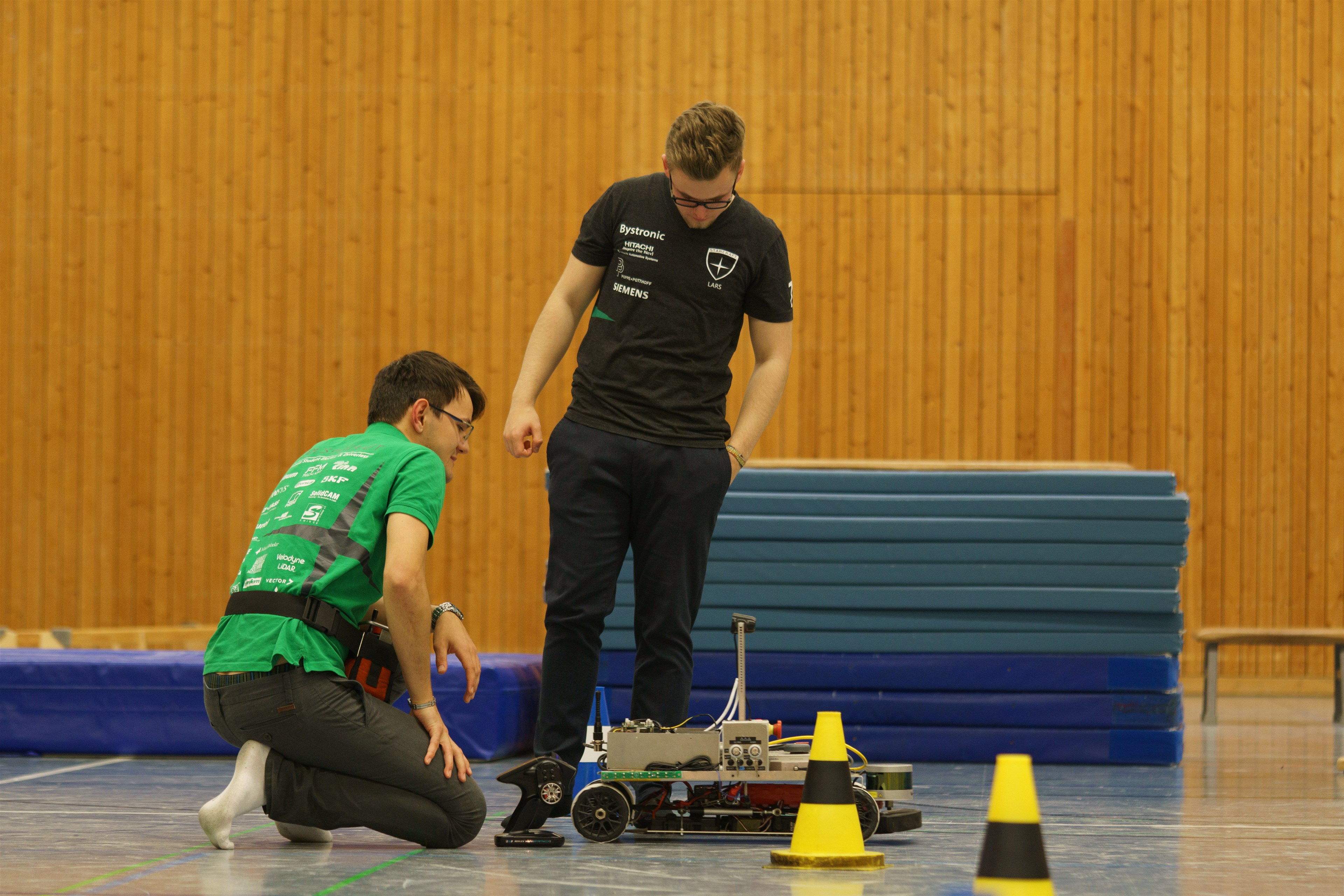 Am Samstag, den 11. Mai fand an der TU Ilmenau die Lange Nacht der Technik statt. Bei dieser Veranstaltung mit rund 15.000 Besuchern konnten wir nicht nur mit dem TSC-5E das Publikum an unserem Messestand begeistern. Der TSC-minE zog bei zahlreichen Showfahrten die Blicke der Besucher auf sich, während ein Mitglied die technischen Besonderheiten und Algorithmen unseres Testträgers erklärte.