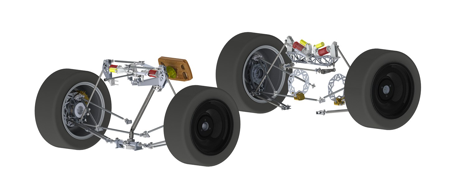 Im Folgenden sind die einzelnen Baugruppen der Bereiche Chassis, Fahrwerk, Drivetrain sowie Elektrik im CAD-Modell dargestellt und erläutert.
