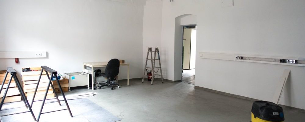 Anfang August begannen die Aufräum- und Renovierungsarbeiten. Der betroffene Assembly-Raum der Werkstatt wurde entrümpelt, gesäubert und renoviert. Mittlerweile