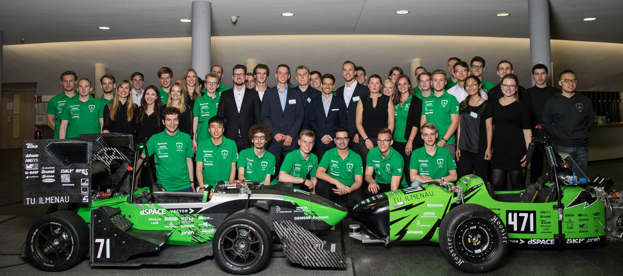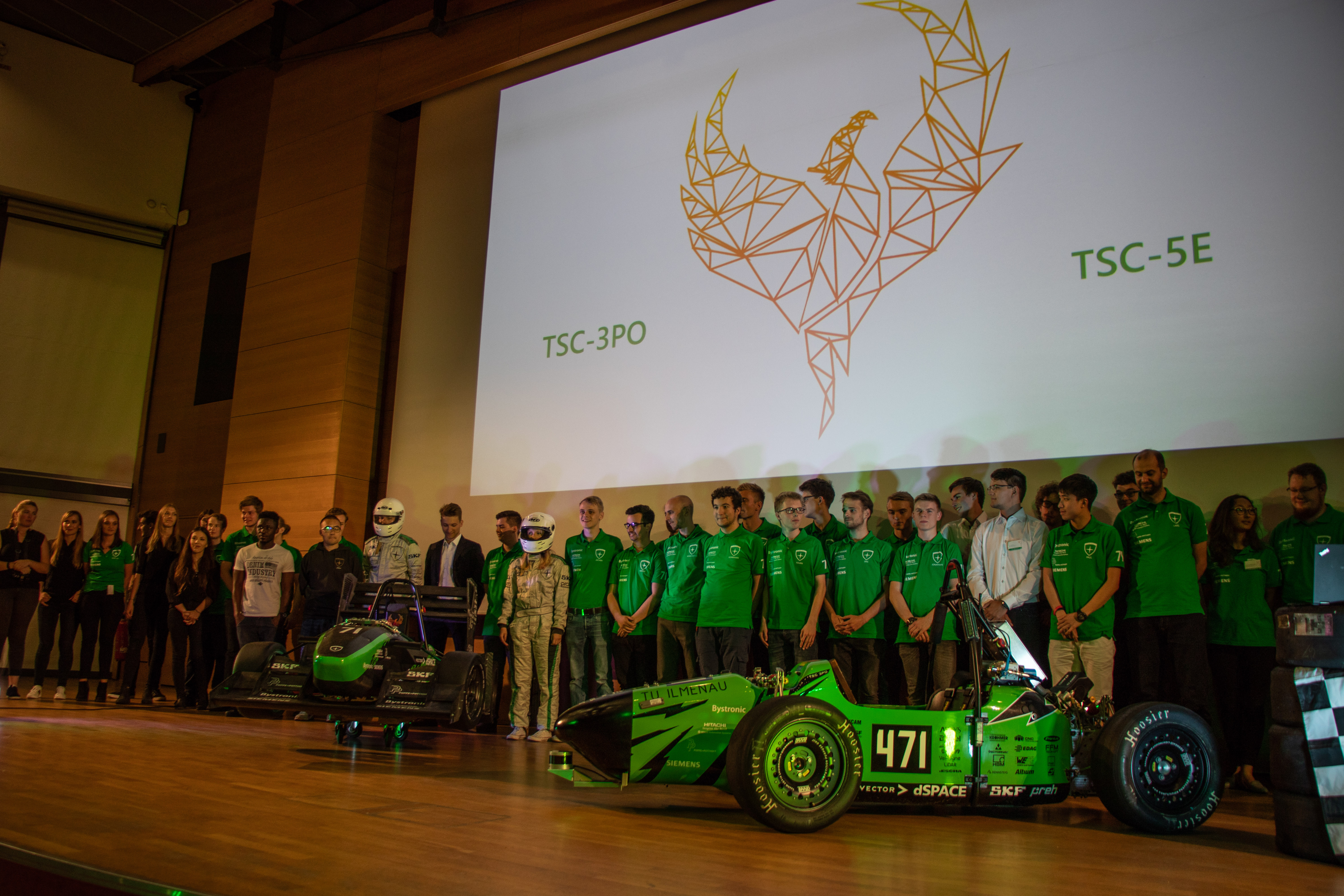 Nach Monaten harter Arbeit, langen Nächten, Momenten der Freude und Verzweiflung war es am 7. Juni endlich soweit und wir konnten stolz unsere zwei neuen Rennfahrzeuge präsentieren. Um 17 Uhr begann das Rollout im Foyer des Humboldtbaus der TU Ilmenau. Nach einem Gläschen Sekt und spannenden Gesprächen mit unseren Sponsoren und Freunden, eröffnete unsere Vereinsvorsitzenden Thiemo Reindel und Mario Schäfer den Abend offiziell. Sie führten durch den bisherigen Saisonverlauf. Anschließend wurden die technischen Neuerungen der Rennboliden vorgestellt.