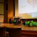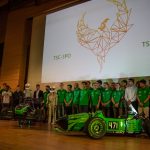 Marian Bolz, Bereichsleiter Vehicle Dynamics & Controls, erläuterte anschließend den neuen Elektrorennwagen TSC-5E. Anschaulich wurde der komplette Konzeptwechsel dargelegt und die technischen Meilensteine, wie der Radnabenallradantrieb mit Getriebe und das Aerodynamikpaket vorgestellt.