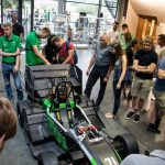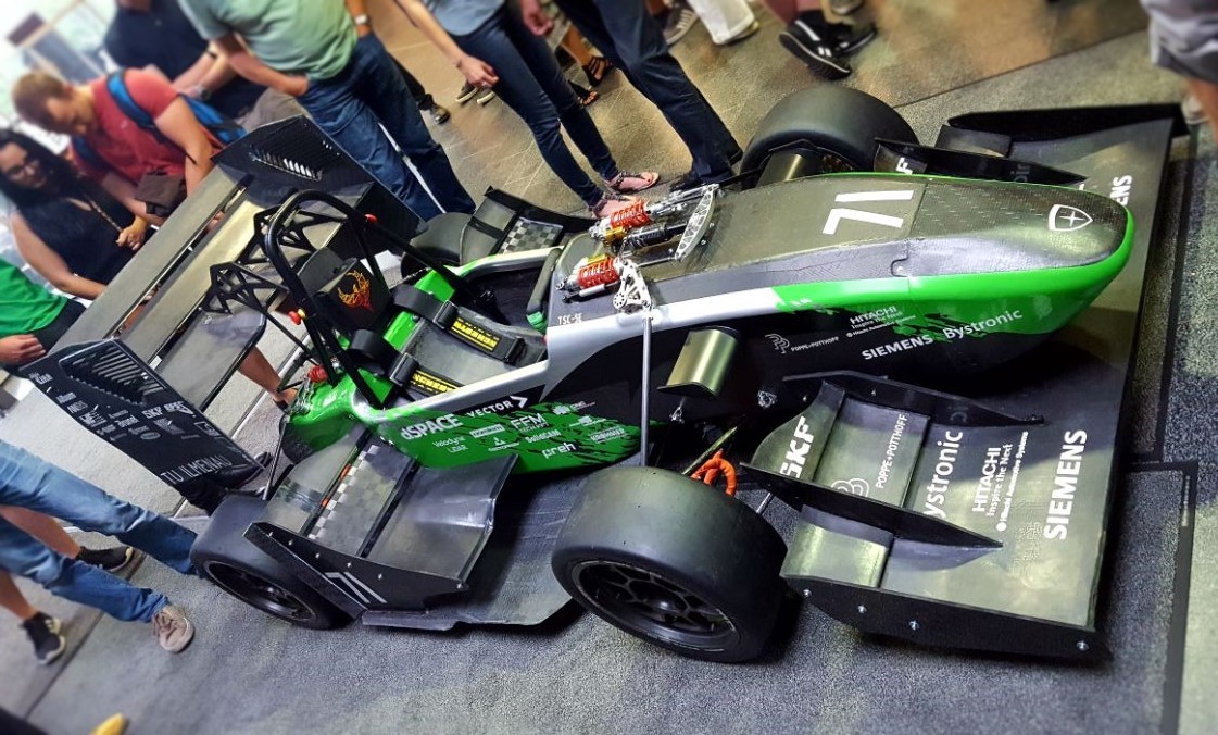 Die beiden Fahrzeuge konnten anschließend im Foyer des Humboldtbaus aus nächster Nähe betrachtet werden und unsere Konstrukteure standen Rede und Antwort für unsere Gäste. Mit kühlen Getränken, reichlich Essen, einer Fotoecke und interessanten Gesprächen ließen unsere Sponsoren, Unterstützer, Angehörige der Universität, Familien und Freunde des Teams den Abend gemütlich ausklingen.