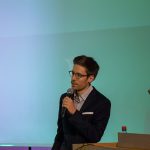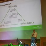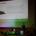 Eric Gorkow erklärte die Funktionsweise unseres autonomen TSC-3PO. Mechanische Umbauten, wie die neuen Motoren für Lenkung und Bremse sowie das Kamera- und Sensorsystem wurden ebenso näher erläutert, wie die Softwarekomponenten, die den Fahrer ersetzen sollen.