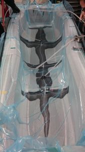 Mit vielen Baugruppen des 6E befinden wir uns nach kurzer Überarbeitung der Konstruktion bereits in der Fertigung und liegen somit gut im Zeitplan. So konnten wir mit dem Laminieren des größten Bauteils an unserem Auto, dem Monocoque, beginnen und halten somit die ersten fertigen Teile in den Händen.