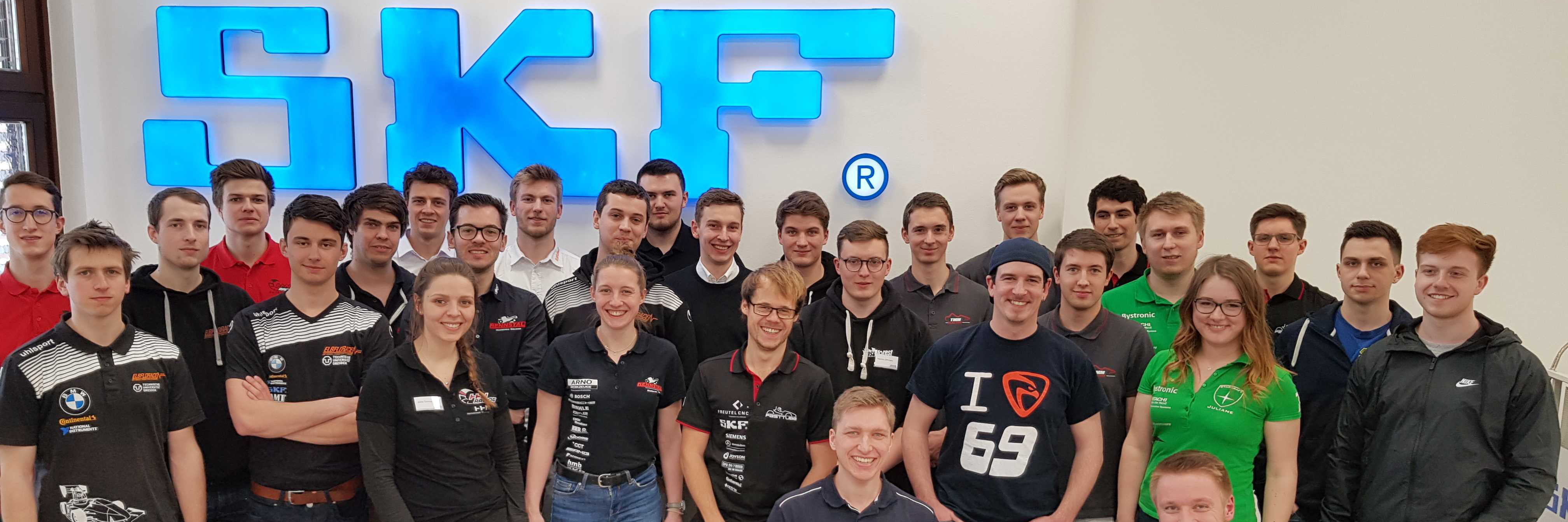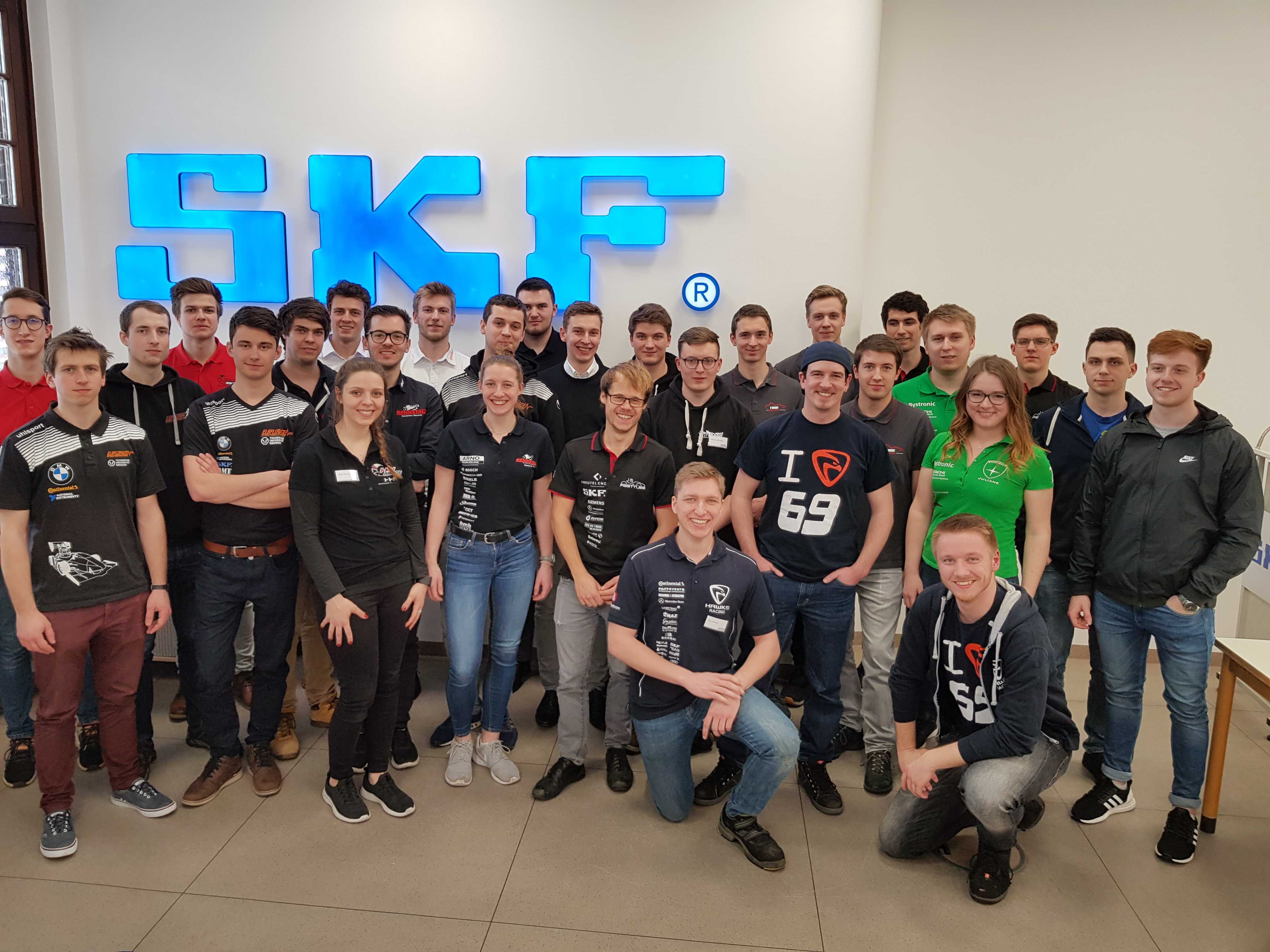Am Donnerstag dem 7. März sind drei unserer Mitglieder nach Schweinfurt aufgebrochen, um am SKF Pitstop teilzunehmen. An zwei Tagen bekamen wir einen Einblick in das Unternehmen. Los ging es mit einem Workshop über den Ein- und Ausbau von Wälzlagern. Dabei erfuhren wir, was man bei der Arbeit mit Wälzlagern ungedingt beachten sollte, damit die Qualität der Ware und somit die Funktion einwandfrei bleibt. Wir erhielten nicht nur eine detaillierte Anleitung für den Ein- und Ausbau von Lagern, die wir an unserem Rennwagen verwenden, sondern auch einen Einblick in das Vielfältige Sortiment von SKF. Im Anschluss konnten wir uns selbst bei der Montage kleinerer Lager versuchen und das angeeignete Wissen anwenden. Am Nachmittag folgte ein Vortrag über Radlagerauslegung. Hierbei gaben uns die Präsentatoren wertvolle Tipps für die Berechnung und was man bei den verschiedenen Lagertypen beachten sollte. Am Abend saßen wir bei leckerem Essen im Brauhaus in Schweinfurt mit Vertretern von SKF und den anderen Teams zusammen und konnten uns in der lockeren Atmosphäre gut über aktuelle Themen und Problematiken während der Formula Student Saison austauschen.
