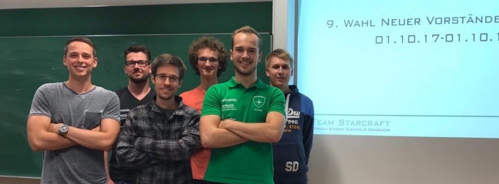 Am 25. Juli wurden die fünf neuen Vorstandsmitglieder vom Team gewählt. Sie lösten die bisherigen Vorstände am 01. Oktober ab und haben seitdem die Leitung in ihren jeweiligen Positionen übernommen. Den Vereinsvorsitz übernimmt in der ersten Saisonhälfte Mario Schäfer (21 Jahre, 7. Semester, BA Maschinenbau), der in der vergangenen Saison den Bereich Sponsoring geleitet hat. Ab April 2018 wird Thiemo Reindel (26 Jahre, 9.Semester, BA Medien- und Kommunikationswissenschaft), der bisher im Bereich Marketing für die Multimediaproduktion zuständig war, den Vereinsvorsitz übernehmen. Zum Finanzenchef wurde Philipp Gräfe (19 Jahre, 3.Semester, BA Fahrzeugtechnik) gewählt, der bisher im Bereich Fahrwerk tätig war. Tim Dietz (20 Jahre, 5.Semester, BA Maschinenbau), der in der vergangenen Saison im Sponsoring aktiv war, fungiert als neuer Mitgliedervorstand. In den vergangenen zwölf Monaten war Paul Schulze-Eckel (25 Jahre, 3.Semster, MA Fahrzeugtechnik) unter anderem für den Heckrahmen und die Anbindungspunkte des 4E zuständig und übernimmt nun die Technische Leitung. Neuer Organisatorischer Leiter ist Alexander Detsch (21 Jahre, 7. Semester, BA Ingenieurinformatik), welcher seit mehreren Jahren die Aufgaben der IT bewältigt.
