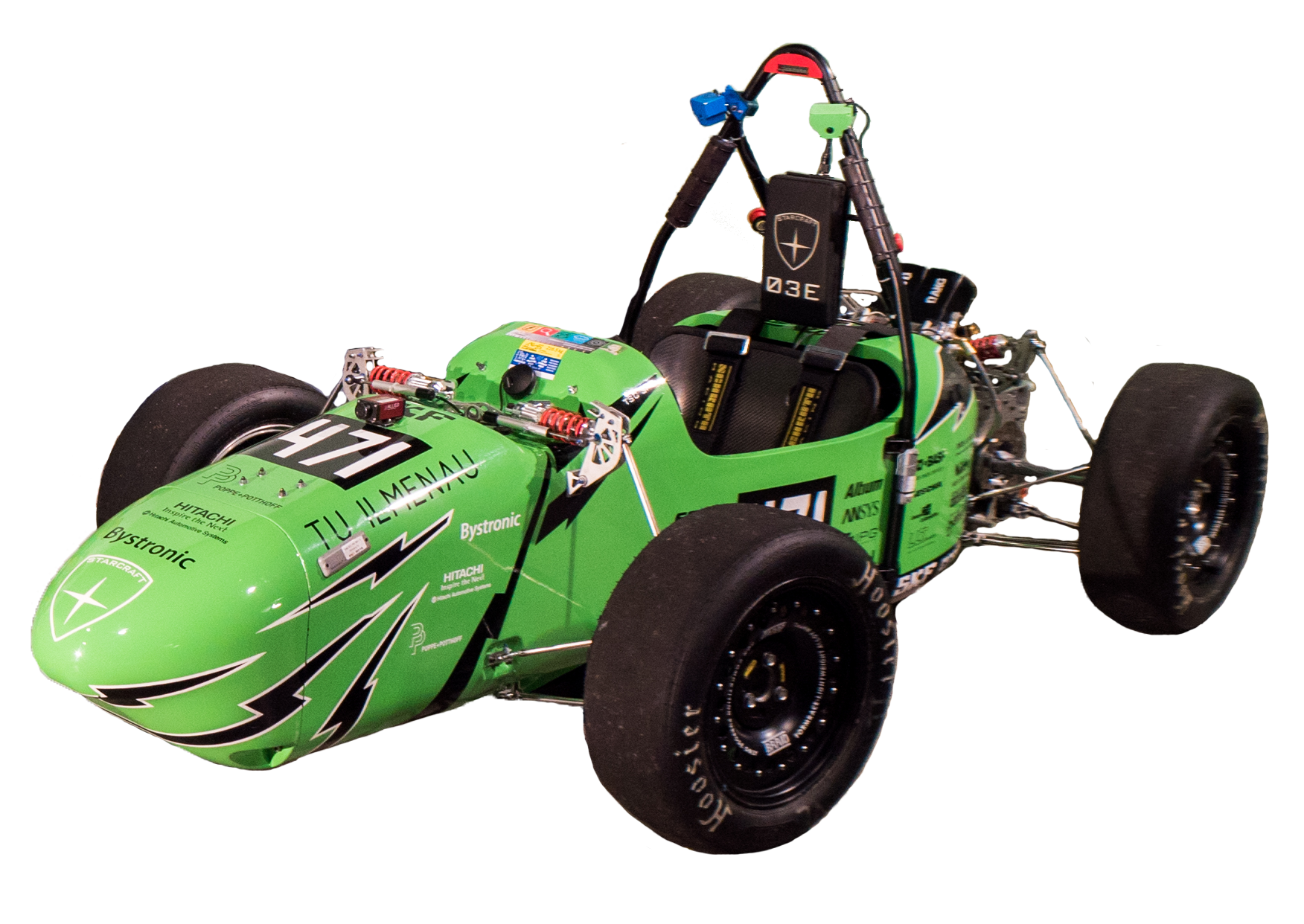 Im Jahr 2017 fiel der Entschluss, einen weiteren Schritt in Richtung Zukunft zu gehen und Pionierarbeit im aktuell spannendsten Bereich der Automobilindustrie zu leisten. Im Rahmen der Formula Student ist dies mit dem neu eingeführten Driverless-Wettbewerb möglich. Als Basis für die Teilnahme und die Implementierung der autonomen Systeme dient das Vorjahresfahrzeug TSC-03E. Für das Driverless-Fahrzeug mussten Konzepte gefunden werden, welche die Aufgaben des Fahrers regelkonform durch Aktoren ersetzen. Die Lenkung wird von einem bürstenlosen Gleichstrommotor übernommen, welcher über eine Zahnradstufe mit dem Lenkgestänge verbunden ist. Für die Bremse sind Servomotoren aus dem Modellbau im Einsatz, um schnellstmöglich die nötige Bremsleistung zu erzeugen. Die Servos sind redundant ausgeführt, sodass das Fahrzeug auch im Fehlerfall sicher zum Stehen gebracht werden kann. Ein komplett neues Aufgabenfeld für Team Starcraft ist die Bilderkennung und -verarbeitung. Die mit Leitkegeln markierte Rennstrecke wird von drei Kameras für den Nah- und Fernbereich aufgenommen. Mittels der Bildverarbeitungsbibliothek OpenCV werden die Kegel erkannt und daraus ein Kurs errechnet. Eine auf dem Einspurmodell basierende Regelung steuert die Aktoren so an, dass das Fahrzeug diesem Kurs folgt.